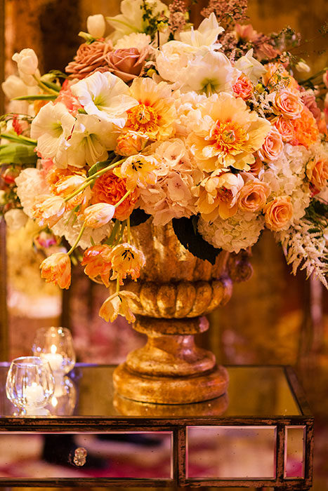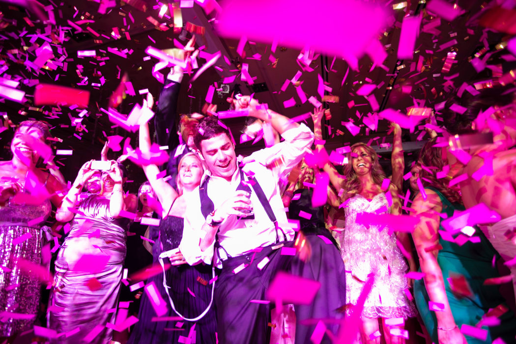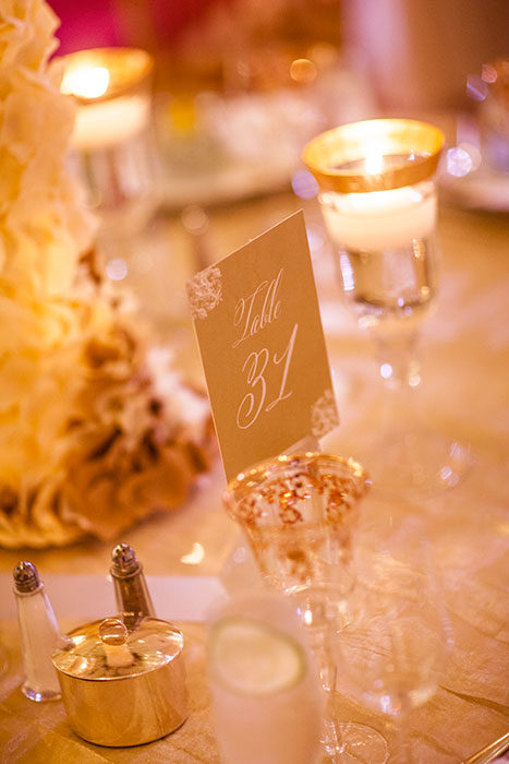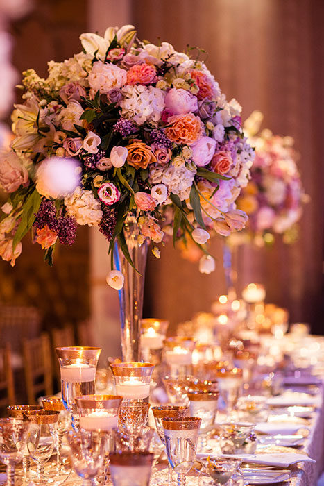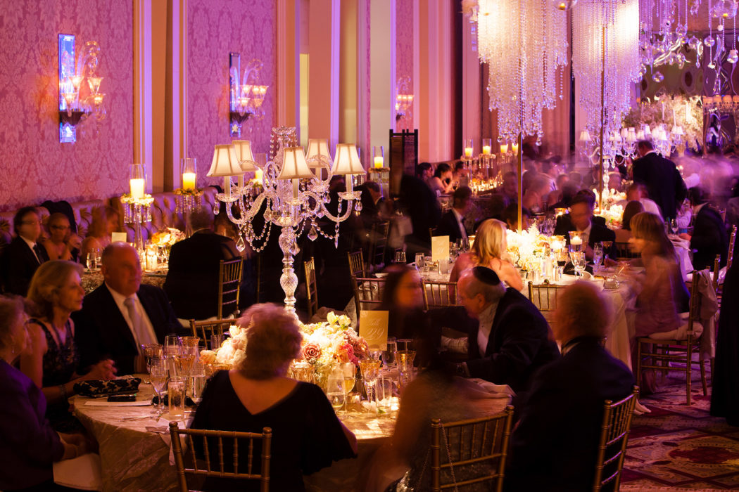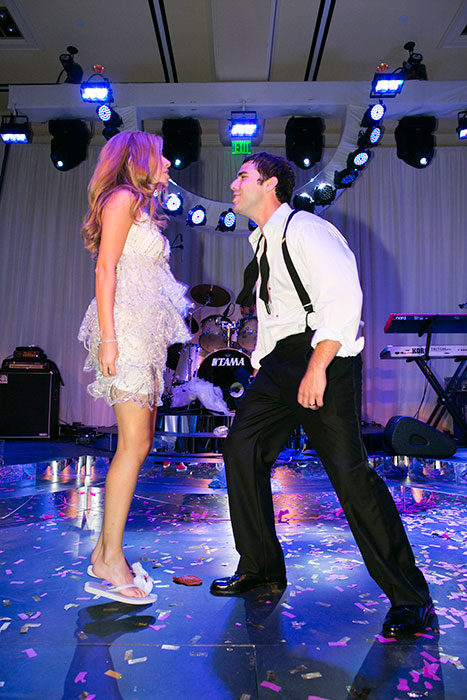 On that early-summer evening at the Ritz-Carlton in Dallas, more than 400 guests looked on as Jenny and Jon exchanged vows under a chuppah festooned with white flowers and crystals. And then the real action began. While revelers enjoyed the cocktail hour, Fiscus and his team transformed the ballroom space into party central, with the chuppah split into three stages for cake presentation; a mix of round, square, and rectangular tables set with white flowers and crystal candelabras; and a custom gold and ivory marbled dance floor with a Plexiglas top and a full bar—“so people never had a reason to leave,” Jenny says.