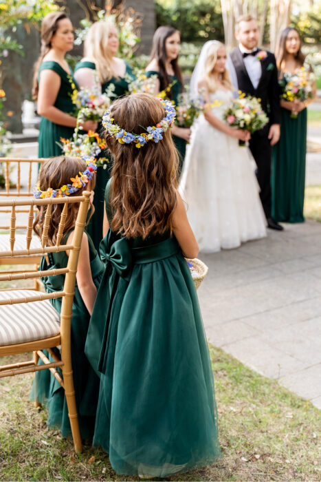 Jessica Hill and Kyle Howard’s relationship started with a postponement, after both came down with the flu prior to their first date. So when faced with the decision of how to proceed once COVID-19 threatened their wedding plans, the couple had no intentions of waiting to tie the knot. “We were going to get married whether it was just our parents in our backyard or the full 180 guests,” Jessica says. “We were ready.” The changes didn’t come easy for Jessica, who took to heart her mom’s advice after months spent planning a one-of-a-kind celebration: “It’s OK to grieve the wedding you thought you’d have.” Fortunately, with a few changes—cutting the guest list, moving the ceremony outside—the Gucci-Garden-themed nuptials were able to commence. At the night’s end, the pair walked home to their downtown apartment—a short stroll that felt more like walking on air. “There was a lot of heartbreak because of COVID,” Jessica says. “But on the day itself, we didn’t feel that at all.”