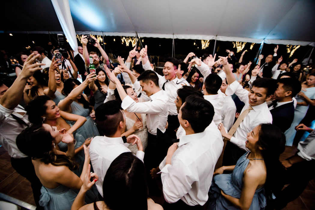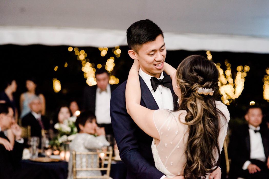 The wedding out of a springtime dream. “I found myself asking, ‘Is this real?’ throughout the entire day and taking little moments to be grateful,” says Sean. The evening ended with her own dance scene: a dance floor filled with everyone from her dad’s business partners to her 85-year-old grandmother.