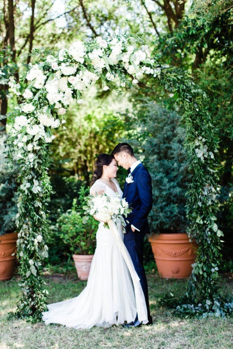 The couple, who are based in Bentonville, Arkansas (where Walmart Corporate is headquartered) married on May 13, 2017. Sean was set on an outdoor wedding, inspired by a scene from the show “Gilmore Girls,” where Rory dances with Logan and friends out in nature, wearing tuxes and elegant ballgowns. Clark Gardens, in Weatherford, Texas, was the natural choice for a scenic spring backdrop.