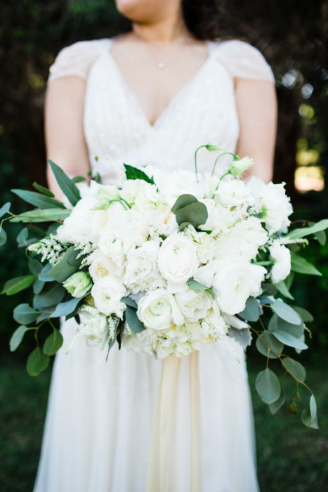 When Sean looks back on her wedding, it was the first look that really stood out. “I was so adamantly against it at first,” she says, but due to scheduling constraints, it was in their best interest to have one. It turned out to be the sweetest moment of the day. Joseph is a big crier, and Sean admits that she is not—but neither of them could hold back the tears. “This was the day we had been praying, dreaming, and wishing for, and getting to see each other in this private moment was so incredible,” says Sean.