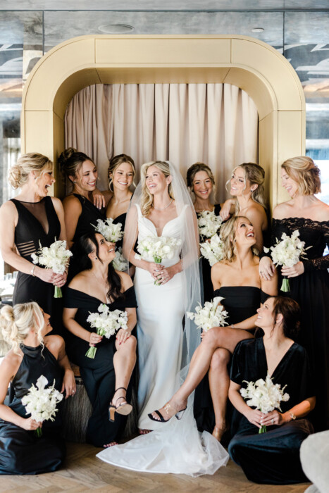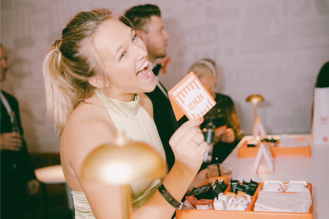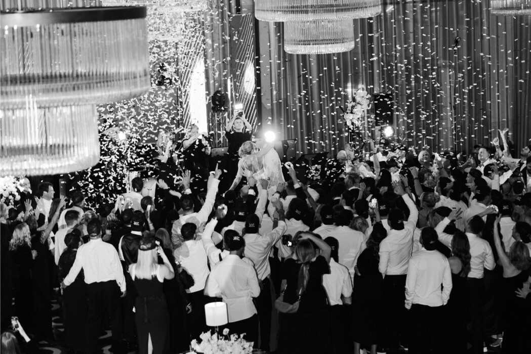 Planner Leslie Ochs is known for her larger-than-life concepts (see #25 on this list). But her idea to recreate a Whataburger—dubbed Wittaburger for the occasion—inside Maggie and Bobby’s reception space may be one of her most memorable. Helping grease the wheels was the fact that Bobby is a national brand ambassador for the Texas-based chain, whose leadership happily gave their blessing and worked with Leslie and Bobby’s marketing agency, Hustle Sports Group, to bring it to life. “They loved the idea,” says Leslie. Then came the tiny task of figuring out how to build it. Because the install would take place mid-reception in the flipped ceremony space, construction couldn’t involve noisy hammers or power drills. Making the need for stealthiness even more important was the fact that the whole thing was a surprise for the bride and groom. In the end, it took more than 100 people to piece it together. Post-reveal, guests noshed on a full menu of fast-food favorites, including the #7 Wittaburger Jr. No detail was spared, from a personalized neon sign to custom table tents and bag stickers—all created in tandem with Whataburger corporate. “Our guests were just as surprised as us,” says Maggie. “It was so, so cool.”