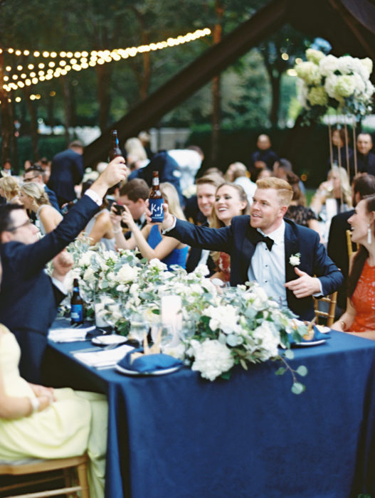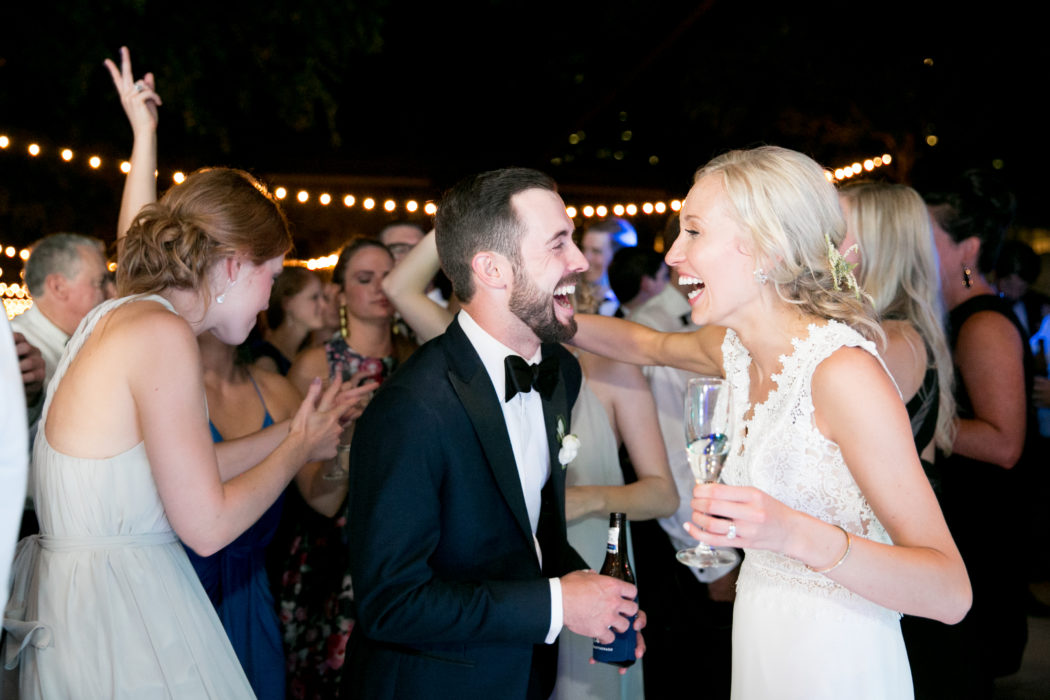 Before joining the reception, the couple shared a private moment overlooking all their loved ones celebrating the joyous occasion. The couple broke in the dance floor with a first dance to “Head Over Boots,” which was one of the songs that Peyton used in the video he made when he proposed to Kari. But the music wasn’t all sentimental—Peyton let loose and rapped “Gettin’ Jiggy With It” with the band. “It was completely unplanned, but it really livened up the dance floor,” Kari says.