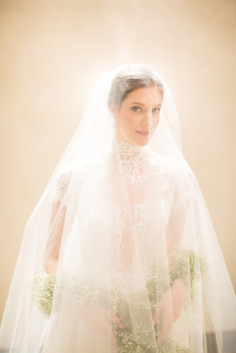 To adorn her Inbal Dror gown, Katie chose a baby’s breath boa inspired by the Rodarte Spring/Summer 2018 runway show. “I had a hard time imagining myself carrying a bouquet and opted for something slightly less traditional,” she says. “It added a really beautiful element of drama.”