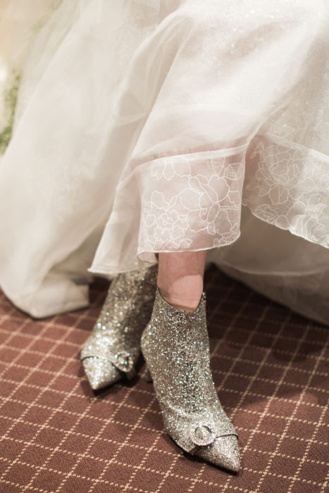 “I love boots and generally wear them year-round, so it really was the only choice when it came to picking out something to go with my dress,” Katie says of her sparkly Jimmy Choos.