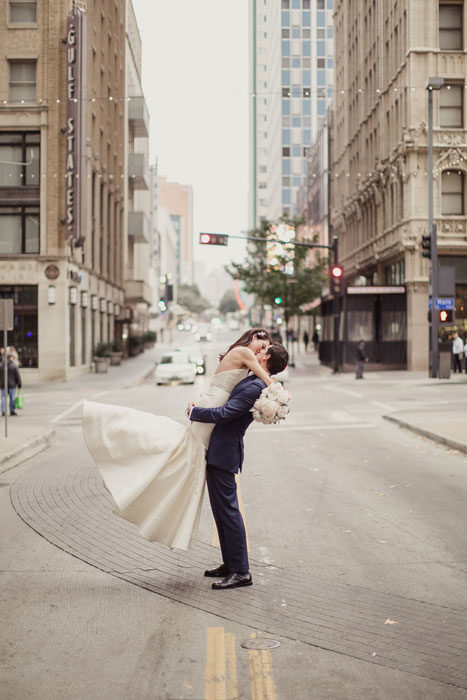 They decided on an intimate morning ceremony and Sunday brunch reception at the Rosewood Mansion on Turtle Creek, where Kayla’s family has long celebrated special occasions. They chose the menu (the Mansion’s famous tortilla soup is one of Kayla’s favorites) and the music, being ardent music fans. And of course Kayla chose a dress: A clean and classic Anne Barge gown that felt appropriate for the understated morning affair.