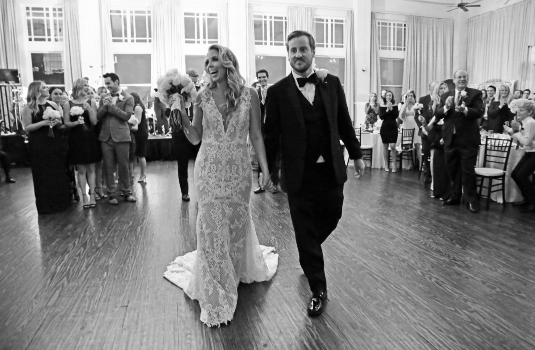 We wanted elements of surprise to trickle into the night. So we started off with cocktail napkins that simply read, “thanks Bumble. #westphallingforclonts” and then after the ceremony, we had cocktail napkins reading, “Welcome to our Surprise Wedding.” We also had little surprises in the form of late night snacks come out every 15 minutes after the dance floor opened up. And we had the cake arrive after the ceremony, so we could experience the traditional cake cutting and champagne toast (in Bumble flutes as a nod to how we met). We also had a cigar bar and caricature artist arrive to accompany the photo booth. And perhaps the most popular culinary surprise was the old-fashioned ice cream cart from Baldo’s. The line for their handcrafted treats was always long. And for our getaway, we gleefully trailed behind the band’s brass musicians, who played When the Saints Go Marching In.