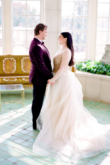 The couple decided on the Olana for the big production, and on November 16, 2019, everything went according to script. While the bride counts the sailcloth tent, lush florals, and Vera Wang gown as top-notch supporting players, for Kirby, it was the scene at the altar that was the star of the show. “Our officiant spoke of Adam’s kind and giving heart, and that’s exactly right. It was moving to hear him talk about Adam and me as a couple, and then send us out into the world.” —Laura Kostelny