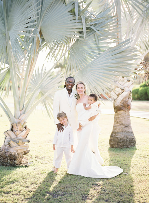 The first night featured a welcome party at an exclusive estate where the bride and groom were staying. The next day, guests were sent on a scavenger hunt around the island, during which they were asked to take pictures to include in the couple’s wedding album. Kristen went on a yacht tour with her friends, and Jeffery enjoyed a wine tasting. Guests were granted complimentary access to the spa, and nannies were available for the 21 kids in attendance, including the couple’s daughter, Jasmine, and Robert, Kristen’s son by a previous marriage. Zaire Bradley, Jeffery’s son from a previous relationship, was the best man. “The 110 guests were all very close to us,” Kristen says. “We wanted to have time to talk and enjoy each of them.”