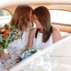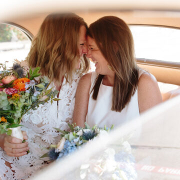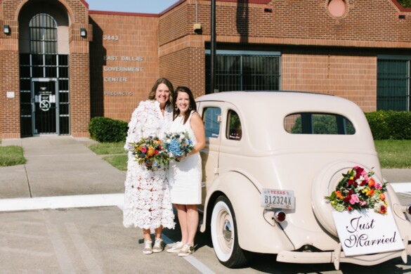 D Weddings celebrates unions of couples of all races, faiths, cultures, and orientations. To celebrate Pride Month, we’re catching up with a few couples from our favorite LGBTQ+ weddings from over the years. Lacy Montgomery and Maggie Watson planned to tie the knot on October 4, 2020, in Cape Cod, Massachusetts, where Maggie grew up visiting her grandparents. When the Covid pandemic waylaid those plans, they decided on a whim to make it official that day anyway, exchanging vows in a spontaneous courthouse ceremony. The couple catches us up on what they’ve been up to since that special day—and what married life has meant to them.