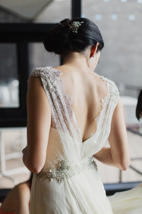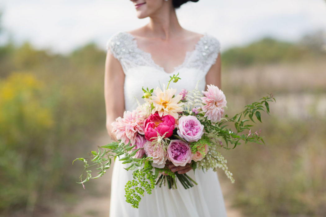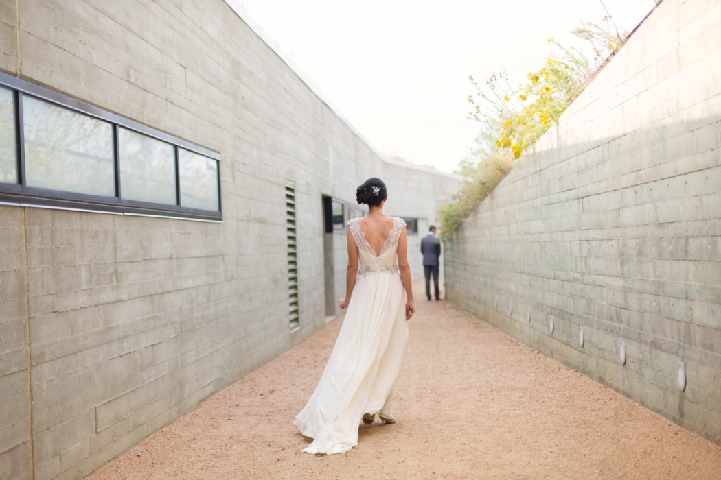 The real beauty of the design was its simplicity. Nothing surpassed the beauty of the bride in her Nardos Imam gown; the sincerity of the officiant who spoke on the universal themes of friendship and love; or the good humor of the bride’s father, who played the guitar and sang “Fools Rush In.”