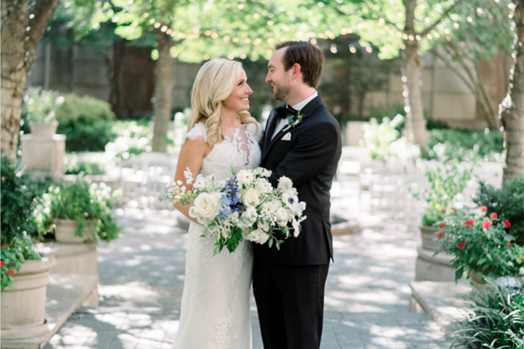 When Blake Smith asked his girlfriend, Lauren Jopling, to go to the Dallas Arboretum on a hot, humid June afternoon, her response was something to the tune of, “Thanks, but no thanks.” When he returned with flowers, she got the message—and in the near-empty Arboretum, a ring. Forced to cut their guest list in the face of COVID-19, they communicated the change to those who had already received a save-the-date—“the uninvitation,” Lauren jokes—and did their best to soldier on with a positive attitude. “I consider myself a pretty level-headed person, and I’ve never been so emotional,” Lauren admits. “The uncertainty was the hard part, and the weight of having to make a decision for so many people who all think you should do something different.” Once wedding weekend rolled around, that stress melted away, and the pair found some silver linings in the scaled-down affair. Recalls Lauren: “Blake and I were able to really be present in moments where we may have been distracted.”