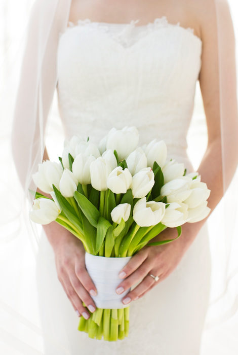 Lindsay insisted on white tulips—and only white tulips—as her florals. “When I said I wanted something clean and simple, floral designers thought I meant plain,” she says. “When we met with Stacey Murdoch at The Wildflower, she instantly got my vision.” As did photographer Jenny Martel, whose journalistic style meshed with Lindsay’s sensibilities.