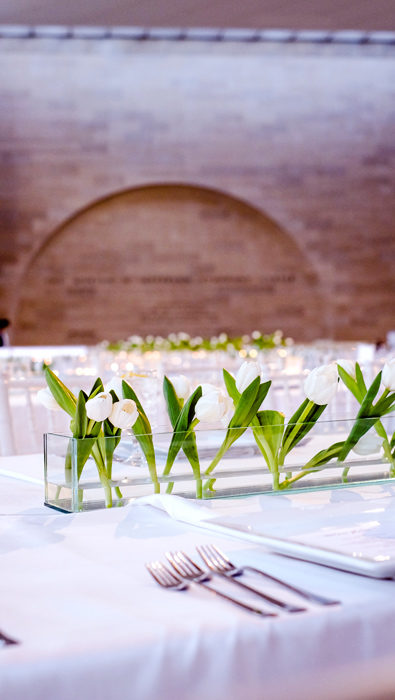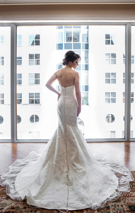 The bride-to-be spent the next year planning her wedding. From the beginning, she envisioned a venue flooded with natural light and king’s tables for the reception. Her mom suggested the I.M. Pei-designed Meyerson Symphony Center. Lindsay loved the idea, and as luck would have it, her August 1 date was the one Saturday the symphony wasn’t performing.