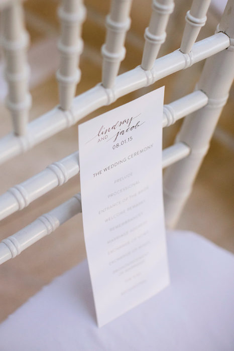 Labeled “the anti-bride” by friends, Lindsay wasn’t a fan of the frill so common at weddings. “I wanted something that felt modern and elegant,” she says. “No sparkle anywhere.” Her vision left many of the vendors she’d interviewed scratching their heads. However, when she met wedding planner Kimberly Rhodes of Hitched Events, “We just clicked,” she says.
