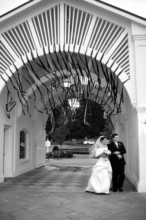 Like their West Virginia wedding. They’d planned a spring 2006 wedding in Dallas, but circumstances conspired against them; the couple had to come up with plan B. When Lindsey’s parents took a late-summer vacation to The Greenbrier in West Virginia’s Allegheny Mountains, a favorite of the Hawkins family, they discovered that the resort had an open date: October 22. Coincidentally, Dallas event designer Todd Fiscus had the same weekend free. After a whirlwind of preparations and just seven weeks later, the bride and groom said, “I do.”