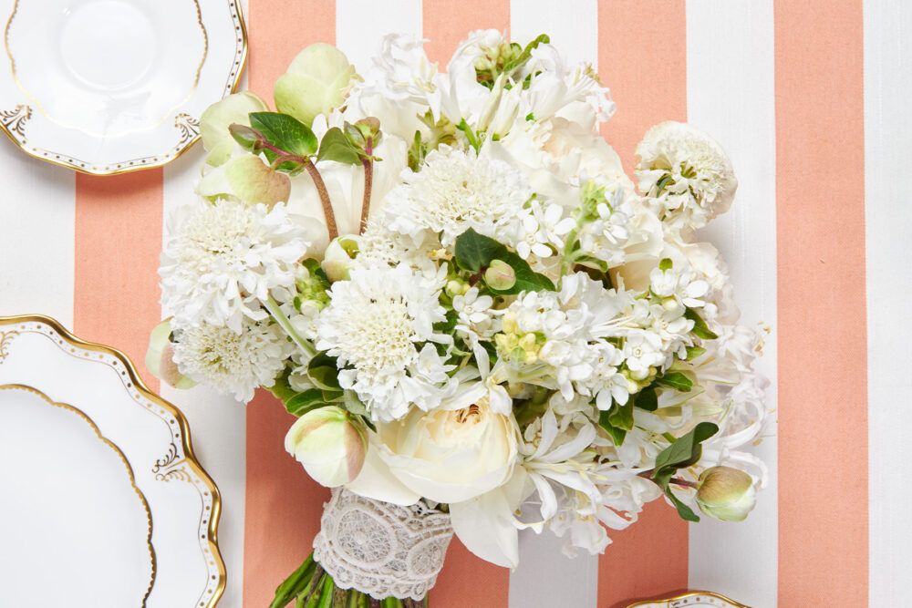 “Southern brides often reflect Southern values of tradition and meaning,” says Maxine. “Nothing is more classic than a white bridal bouquet, clean and crisp, with white flowers representing eternal love, innocence, and new beginnings.” She asserts that you needn’t match your bouquet to the rest of your florals, if you’d prefer to go bold in your ceremony arrangements and centerpieces. “A white bouquet can fit within any palette.”