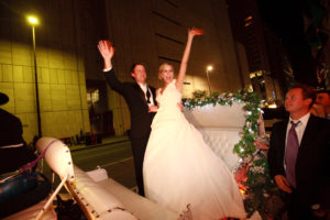 At the end of the night, the two rode off from their ballroom reception in a carriage. “The night went by in a flash. I was so sad when it ended because I wanted to spend more time with all of my family and friends in one room. Those are the memories I remember —being with my favorite people and marrying my favorite person. And now we get to share our photos with our two daughters and they love seeing their parents and relatives having so much fun,” she says.