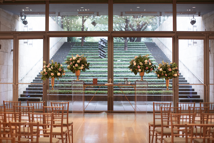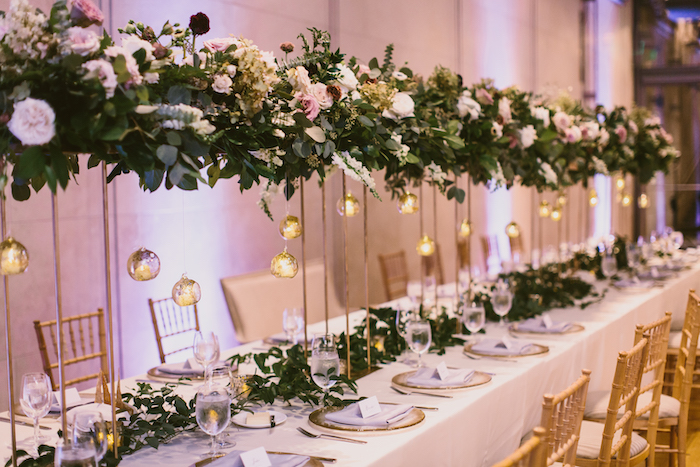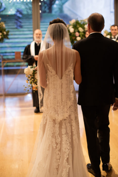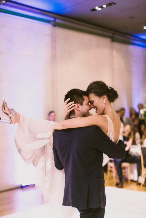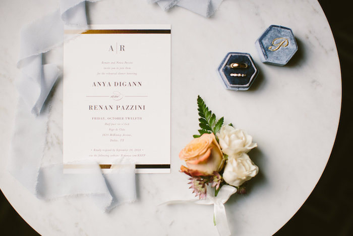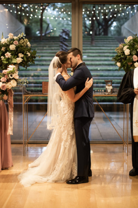 After looking at many different and diverse destinations for their nuptials, Anya and Renan (who had already moved to Chicago, where they currently reside) decided on the Nasher Sculpture Center in their hometown because of its natural beauty. “I wanted our wedding to feel as if Gatsby threw an intimate garden party, but today,” Anya says. “I love when old is new again and it feels as if a small surprise could happen at any moment. I sought out a mix of romantic colors and textures and contemporary decor.”