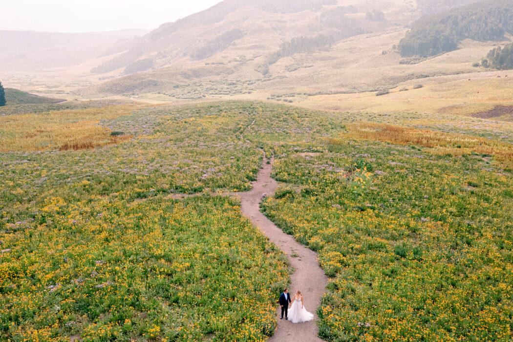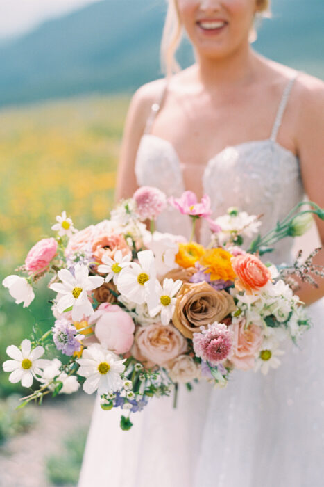 For Shelby Owens and Alec Zogas, the town of Crested Butte, Colorado, marks the beginning of their forever. Mutual friends had tried to set them up in Dallas many times, but when the pair found themselves both in the Rocky Mountain town one New Year’s, there was no denying it was kismet. Once engaged, the couple decided to celebrate their nuptials where their love story began, while blooms were still plentiful from the destination’s annual wildflower festival.