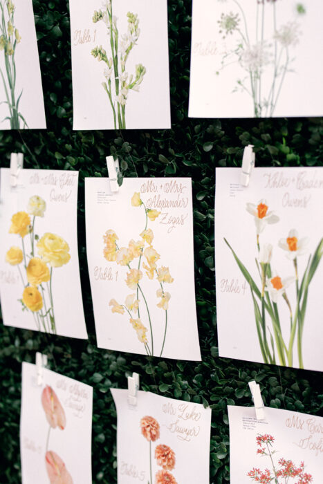 “I wanted something unique to us,” says Shelby, who sought to enhance the wildflower aspect with a natural, undone feel. The result: a flower-filled, sunny outdoor ceremony and indoor reception full of personal details and whimsy. —Mary Grace Granados