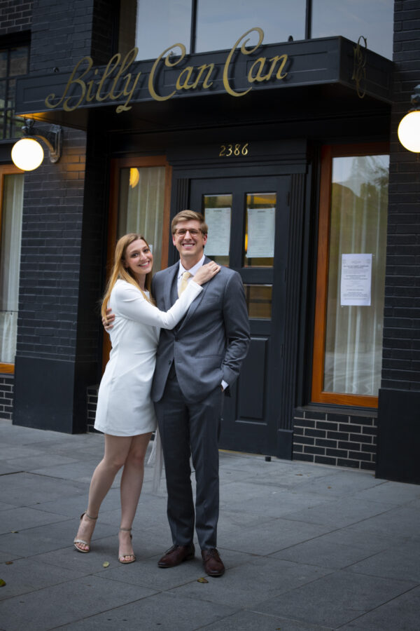 As she previously reported on Frontburner, a few Mondays ago was no different, when she stopped by Billy Can Can to pick up dinner prior to the citywide lockdown. In walked Lauren Niculescu and Andy Moore—the last people to pick up a to-go order from the restaurant before it closed. Turns out, it wasn’t just any dinner. It was their wedding dinner, following a last-minute elopement at Lakeside Park after having to cancel a friends-and-family celebration in North Carolina due to COVID-19 concerns. Elizabeth was all too happy to snap a wedding portrait for the happy couple, above. Here’s what Lauren and Andy had to say about their experience, their decision to seal the deal before sheltering in place, and what their future wedding plans are.