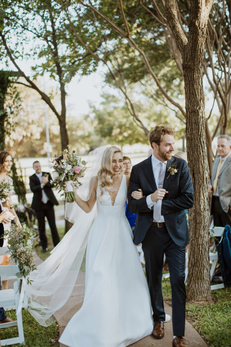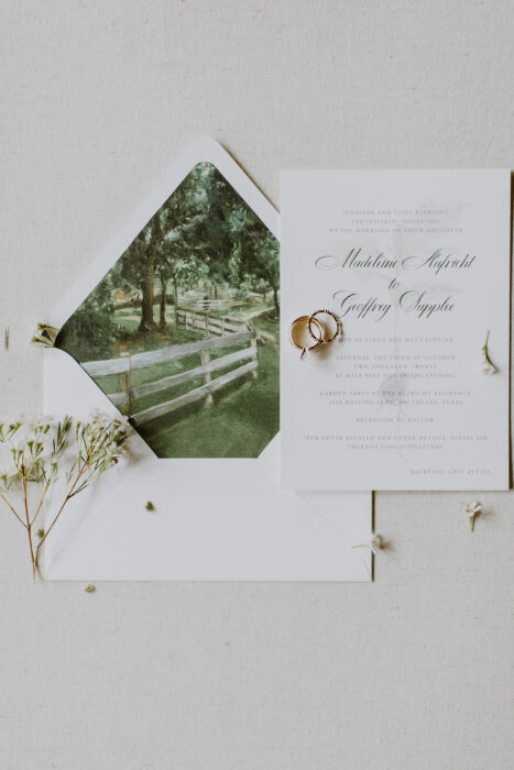 Madeleine Aufricht’s family home holds the memories dearest to her. It’s where she’s lived since she was just weeks old, where her now-husband Geoff Supplee proposed—the details of which are kept private between the two of them—and where the pair tied the knot on October 3, 2020, in a romantic backyard celebration with string lights lining the trees. “I’ll always remember getting to marry the man of my dreams at my parents’ house, the house I grew up with,” Madeleine says. “There’s nothing much better than that.”
