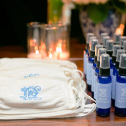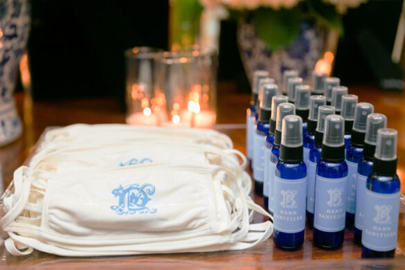 The newest must-have wedding item is… hand sanitizer? To keep guests safe, bride Brooke McLeod’s mother made her own batch of sanitizing spray, which were accented with custom Paper Planet labels. For a readymade option, Dallas-based MELI HANDS smells great, is gentle on skin, and comes in personalizable glass bottles, making it perfect for favors or to have at each guest’s seat.