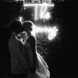 Kathleen Baird and Marshall Young Jr. bask in the glow of their new shared moniker, thanks to the neon sign commissioned by planner Melanie Tatum of Melanie Tatum Events from Australian maker Little Pineapple Neon. Locally, Neon of Dallas creates custom pieces that make fun wedding-day keepsakes. Don’t want to commit? They offer rentable options, too!