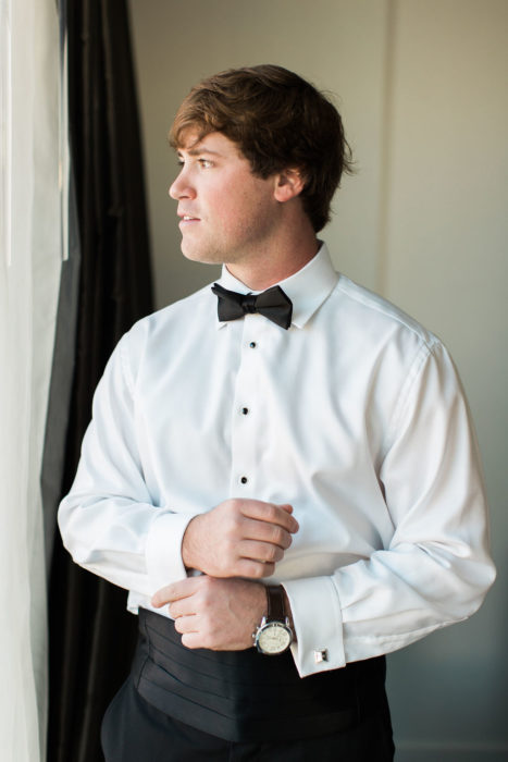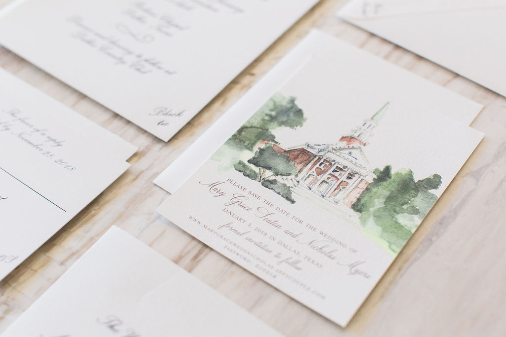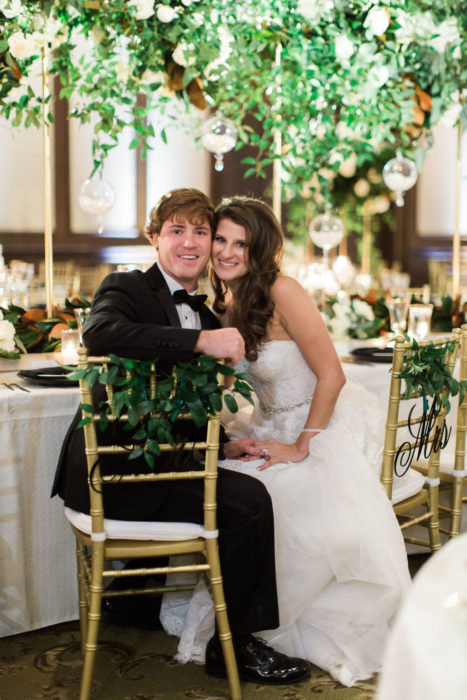 The couple chose to marry in the bride’s hometown of Dallas and had a traditional southern wedding on January 5, 2019, at Perkins Chapel. They kept the decor classic with clean lines and a palette of black and white. During the ceremony, the pastor asked the couple to turn around and take a look at the crowd. The majority of their guests were from out-of-town, so the turnout was more than they could have asked for.