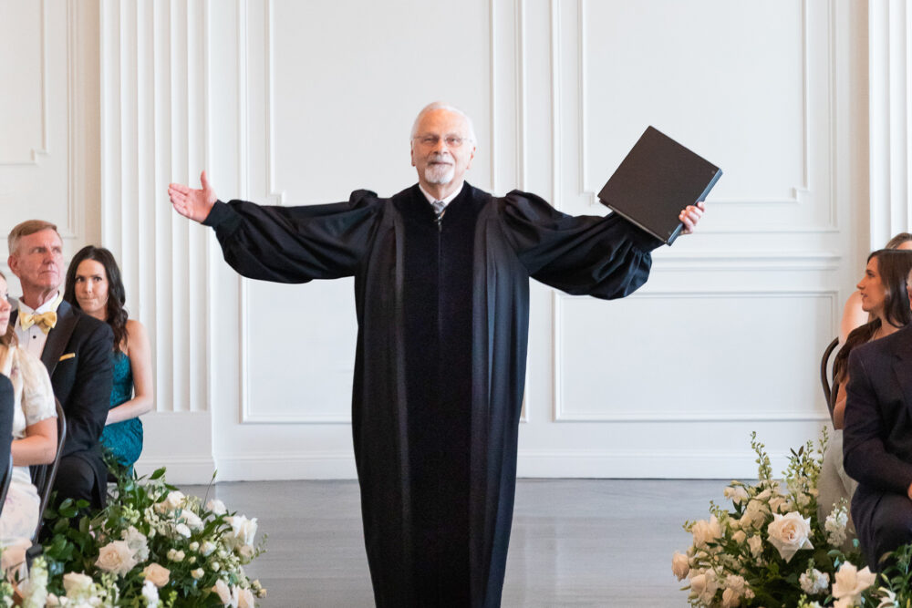 Younkin cites the three E’s—experience, expertise, and education—as the backbone of his business. But above all else, he says, an officiant must be genuine. “We go through the training process to get [our officiants] prepared for any and all situations, but the love and care you have for people must be real,” he says. You also want someone who takes time to get to know you and your significant other. After meeting with each client in person, Younkin tailors his words to the couple—a detail that hasn’t gone unnoticed by planner Whitney Bailey of Engaged Events, who has worked with Younkin on at least 20 weddings. “He customizes each script so it’s not a cookie-cutter ceremony,” she says.