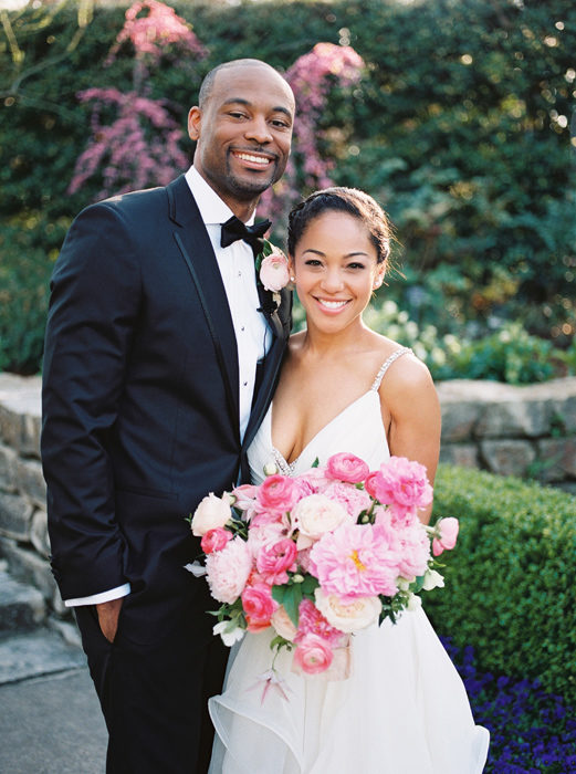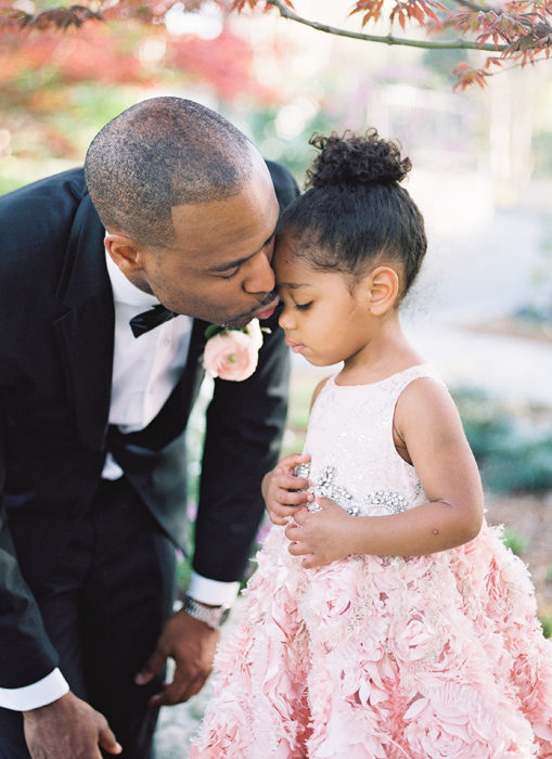 Family is foremost for Jessica Hunt and former professional football player Michael Huff. When he was ready to propose to his longtime girlfriend, Michael reserved a room at Jessica’s favorite restaurant and invited her family and friends. Expecting a birthday dinner, Jessica was surprised to receive a proposal instead. For their March 28, 2015 nuptials planned by Jordan Payne Events, the couple skipped the traditional wedding party and focused on family—specifically, their daughter Maddie, who served as flower girl.