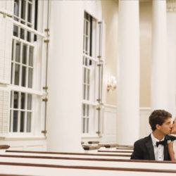Hayley Albrecht and Dalton Stogner opted out of a first look for their December 15, 2018, wedding and allowed the aisle to be the first place they saw each other. They shared a special, quiet moment together in Perkins Chapel following the ceremony. “I think [our photographer] Margot really captured how happy, calm, and in love we were in that moment, knowing that we were married and finally starting our life together as husband and wife,” says Hayley.