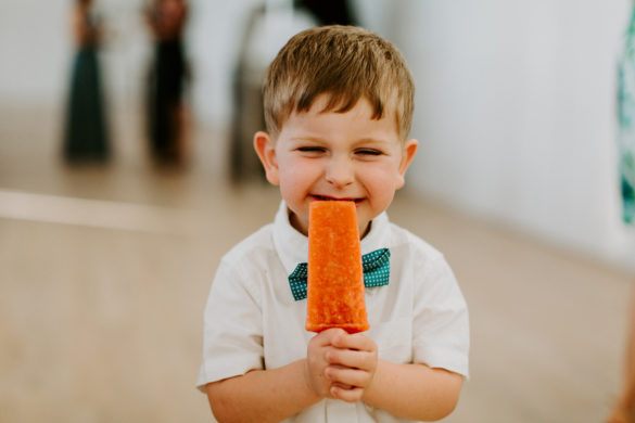 Bride Lauren Butler and groom Sam Perkins knew they wanted their catering to be fun and different: They opted for two food trucks, a popsicle stand, and cupcakes instead of a traditional catered meal and wedding cake. The bride’s young cousin, who had flown in with his family from Maine just for the May 11, 2018, wedding, was especially pleased. “The guests loved getting to choose their own meal,” says Lauren.