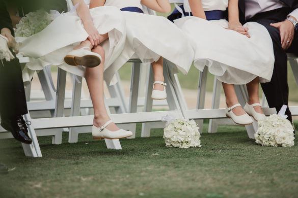 There are many young children in Leslie Horn and Danny Peterson’s families, so it was natural that the bride’s nieces—Margaret, Emily, and Julia—served as flower girls for the September 30, 2017, wedding. “They took their jobs very seriously, and when we look back at photos, you can see their little budding personalities coming out,” says Leslie. “We couldn’t have imagined our wedding without it including the kids in our family—they’re just as much a part of our story as everything else.”