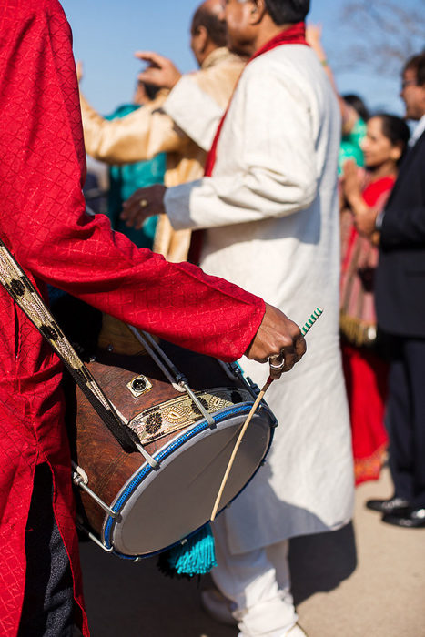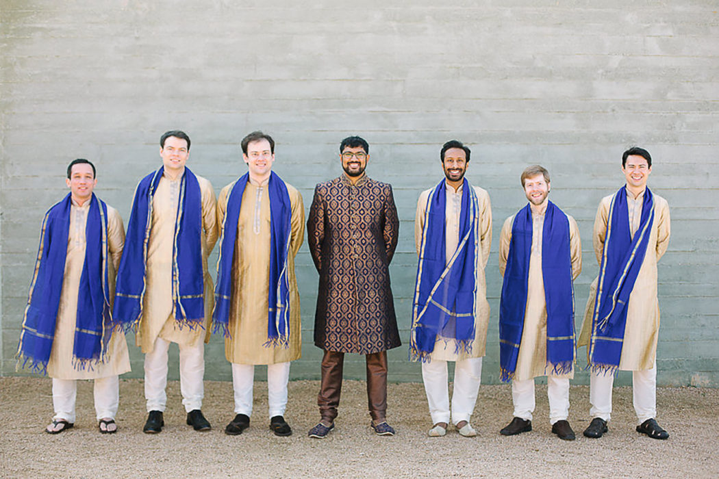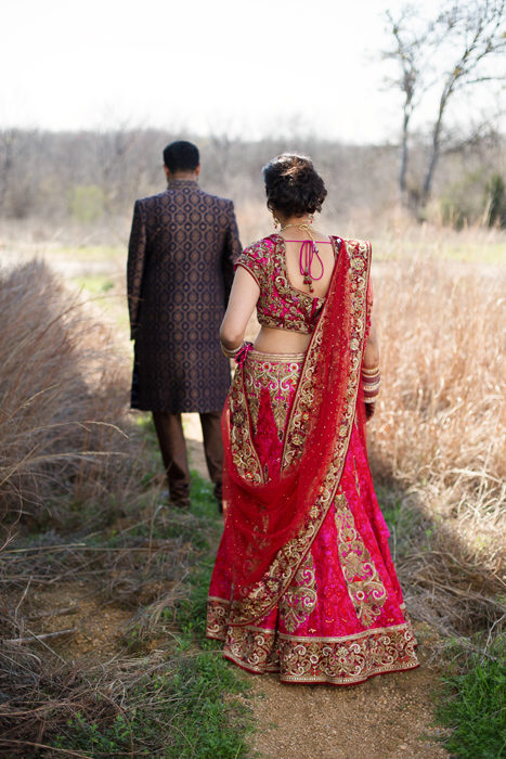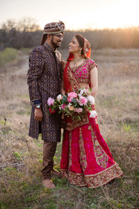 The couple wished to honor their families by incorporating traditional Indian wedding rituals, but they still wanted the day to reflect to their Americanized sensibilities. A fusion wedding featured on the After Yes website caught Monica’s eye, and she hired the wedding-planning company to produce her own exotic nuptials. “I’m not a big ballroom girl,” she says. “Big poufs of flowers and fussy decor aren’t my cup of tea.” Planner Amanda Connolly suggested the Trinity River Audubon Center as a venue and called in The Southern Table to create cascading bouquets and garlands, loosely arranged centerpieces, and hanging floral chandeliers.