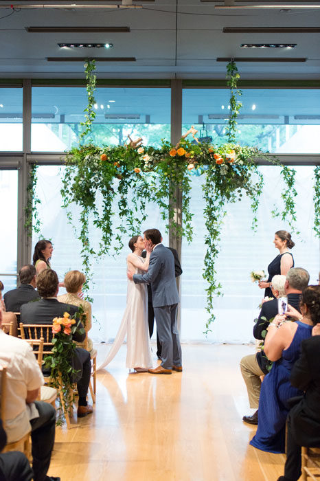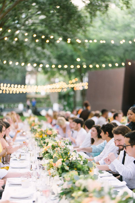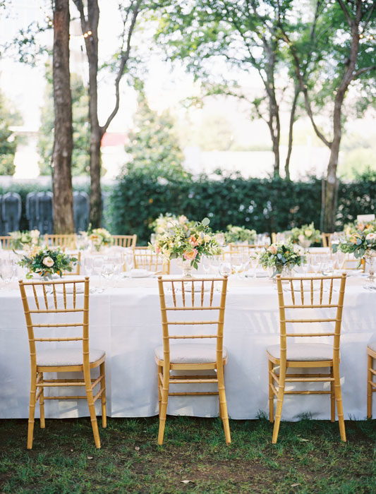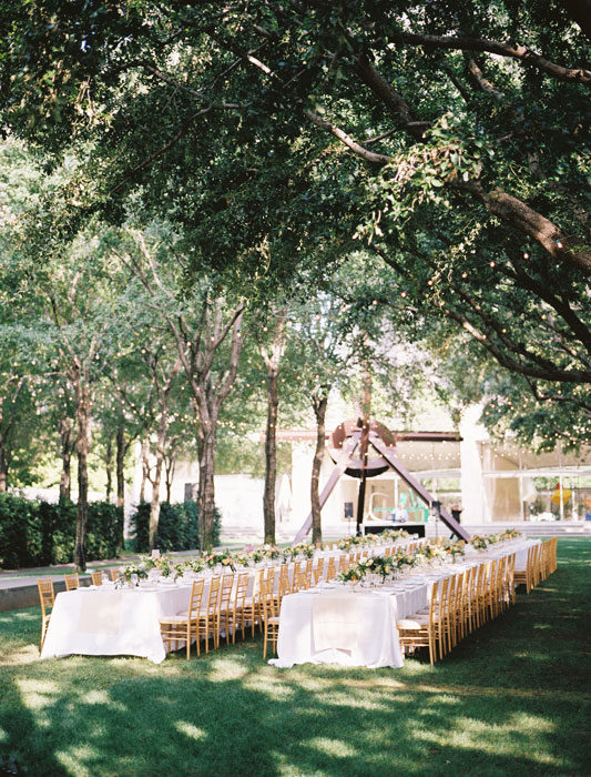 Murphy Crain and Michael Campi found love in 2006 during triathlon training. They dated for three years and broke up when Murphy moved to France after college graduation. But they eventually found their pace again and jubilantly crossed the finish line at their May 28, 2016, wedding at the Nasher Sculpture Center. The theme was natural, organic, easy. Colors were hunter green, gold, and white, and naked cakes, white linen, and china set the stage perfectly for a beautiful marriage.