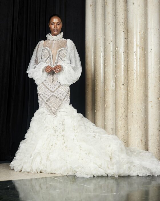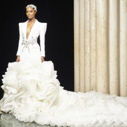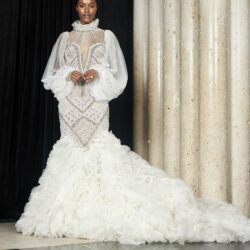 “An Esé Azénabor bride is a boss. She doesn’t want to look like anyone else,” Azénabor says. “I want to incorporate that idea of being a powerful woman with the true romance she’s feeling on her big day.”