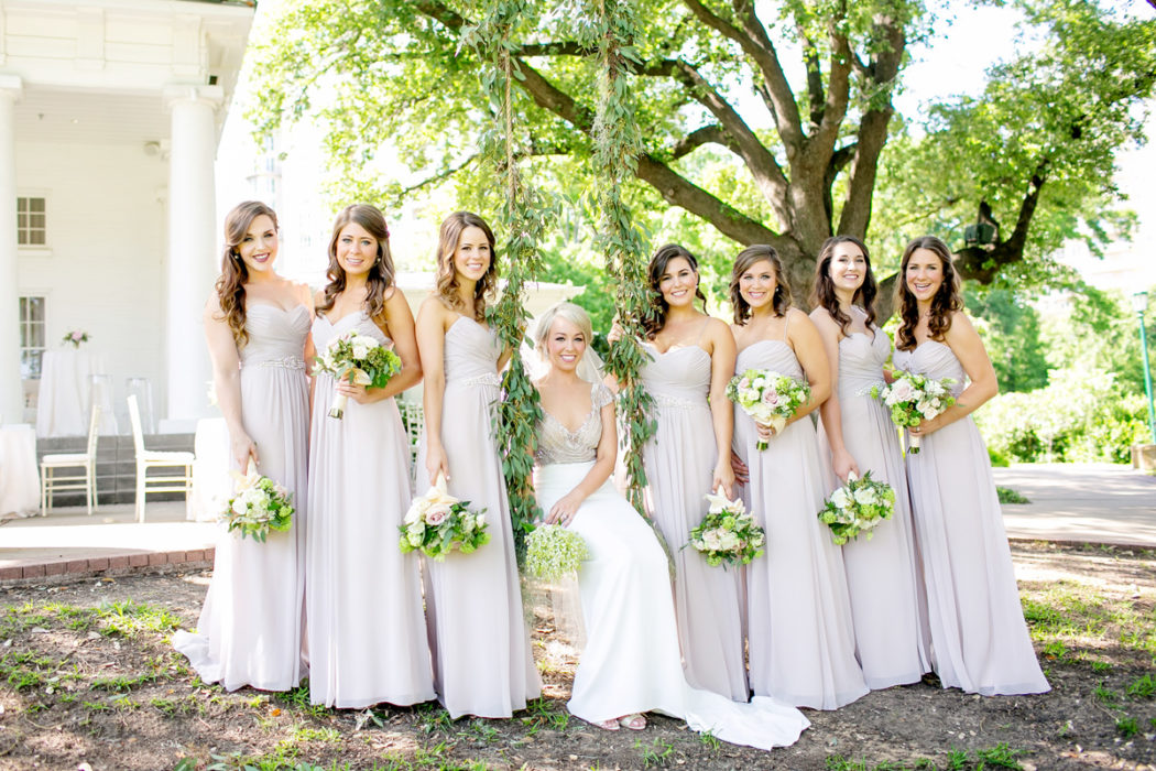 Olivia had long dreamt of a wedding at Arlington Hall: “It’s the ideal southern wedding place for me.” She turned to Todd Events to execute her vision of a garden paradise with blush and silvery gray. “I loved my wedding. Everything I had envisioned came to fruition,” she says.
