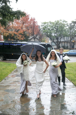 We’ve seen plenty of weddings that have used rain to their advantage, making the couple’s day even more magical. Erin Byrne and Jimmy Watson decided to keep their ceremony outdoors as the sky started pouring down, utilizing their planner’s stash of umbrellas. “It’s weird to say that the rain was my favorite part of the day, but it was, ” Erin says. “Everyone was such a good sport.” Sarah Brawner and Joseph White took advantage of the downpour on their big day by collecting rainwater in a mason jar to baptize their future children with one day. Lauren Fine and Benjamin Morrissey were caught in the rain walking through their venue, making for the perfect candid photo.
