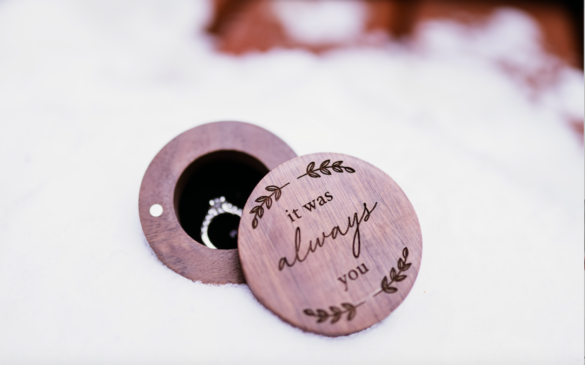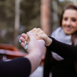 I’m at an elevation of 9,000 feet. I’m surrounded by snow-frosted pine and Aspen trees. It’s 10 degrees outside and I can see my breath like a puff of cloud floating off into the endless expanse of sky. I’m a tomboy Texas girl lost in the iridescent mountain wilderness and all of a sudden… I’m a bride to be.