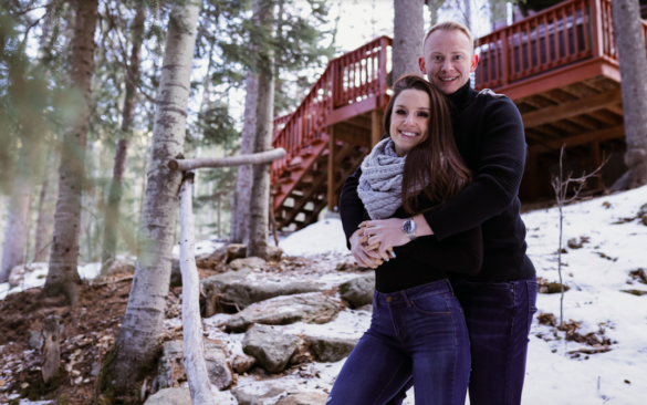 We found a cozy, rustic Airbnb in the Colorado mountains and booked a few days of snowboarding at a nearby ski resort. I was just looking forward to our first real vacation in months, but John had a lot more in mind. Our first morning in the cabin, we got all made-up and bundled to take pictures in the freshly fallen snow. But the photoshoot turned into a secret video of my Prince Charming getting down on one knee.