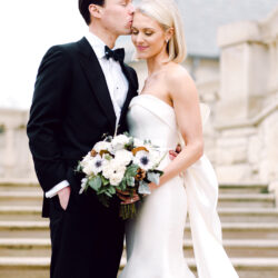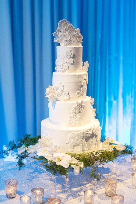 A frosty January wedding day also let me stick to my personal color wheel. I love cool colors like dusty baby blue, muted lavender, emerald green, silver, and gray; a palette that could paint the dreamy skies and lush forests of the season. I want our guests to step into the venue and be swept away by our unique love story.
