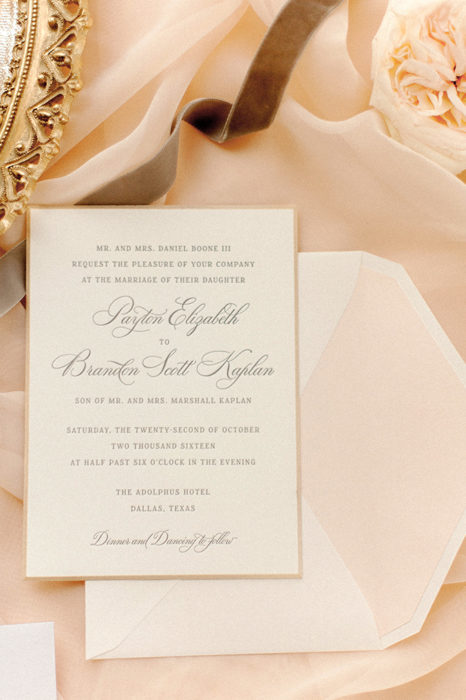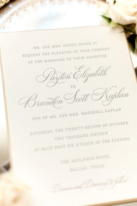 A Red River rivalry couldn’t keep Payton Boone (a Sooner) and Brandon Kaplan (a Longhorn) apart. After learning to like one another’s team, they also fell for each other. An intimate New Year’s Eve proposal preceded their “magical and romantic” wedding on October 22, 2016. Payton’s mother gave her a sixpence for her shoe and a letter from her late grandmother, which added to the fairytale day. The celebration included the couple’s favorite food—chocolate—by way of mini shakes, and the groom’s cake nodded to a team they could agree on: the Texas Rangers.