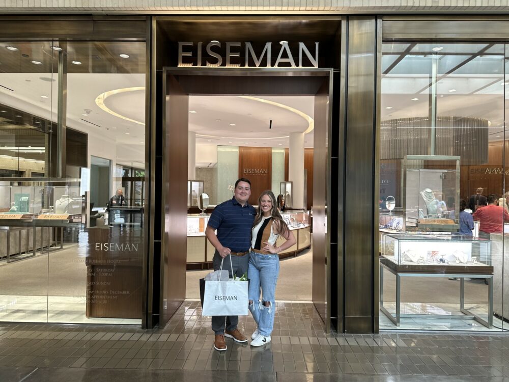 Rings are arguably the most significant part of the wedding planning process—the engagement ring kicks off the start to “I do,” and the wedding band caps the journey when you promise forever. The world of diamonds and gemstones can be daunting—even if you have had a Pinterest board since middle school with all the ring designs. To aide in that process, D Weddings is partnering with Eiseman Jewels to guide Macy and Ethan as they navigate selecting their custom wedding rings. Eiseman—a Dallas family–owned jeweler and one of the original tenants of NorthPark Center—will be celebrating 60 years of service this fall and is a purveyor of a coveted designer collection including GIA-certified diamonds. Cristina Salas, one of the many experts at Eiseman, dishes on their appointment with Macy and Ethan, current wedding band trends, the custom-ring timeline, and more.