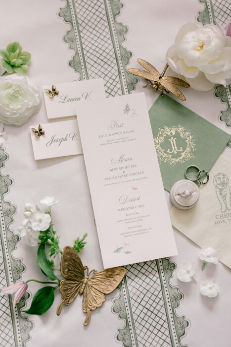 Lauren: My mom and mother-in-law truly put in so much work to make sure our invitations were everything we envisioned and more! We had the wallpaper that was used throughout the wedding turned into vellum to wrap the invitations, a truly special touch that showed how much we cared about each detail.