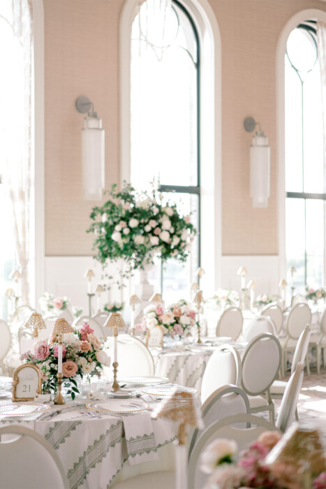 Lauren: We tried to focus on creating an evening that felt deeply intimate and unique to Joe and I. The tablecloths, pillows, and all the guests’ napkins were custom made to match the wallpaper we had chosen. Each color in the fabric and wallpaper was matched to complement the ballroom and highlight its gorgeous features.