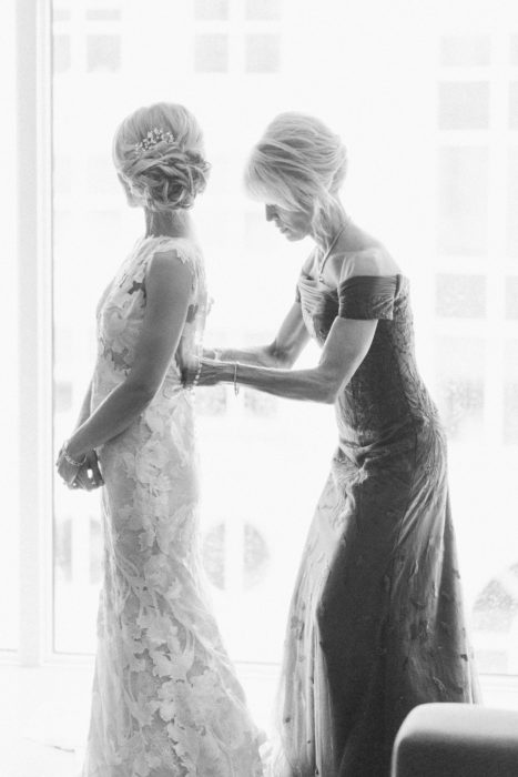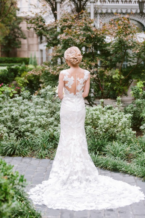 When it came to picking out her gown, Rachel knew she wanted something form fitting, but making her final decision took some time. “I’m indecisive on a good day, so committing to ‘the’ dress was hard … ” Rachel says. “ I tried on upwards of 60 dresses before finally finding the right one. But even then, I slept on the decision for two weeks before calling my bridal consultant and fully committing.”