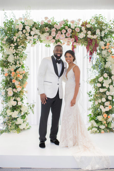 When then-Dallas Maverick Raymond Felton approached Tabitha Tuggle, she had no idea who he was. “His occupation didn’t matter to me,” she says. “I wanted to see his character and him for who he was.” But as they started dating, she realized that he made the cut. After Raymond dropped to one knee after a private fireworks show on a ranch, the two shared their spark for each other at The Joule on August 26, 2017, with a wedding planned and designed by Jordan Payne Events. And another glowing moment for Tabitha: She walked down the aisle with her father to a saxophone playing “You Are So Beautiful” while her grandpa looked on.