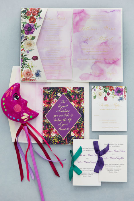 Memorable details are what make a wedding, and Katie Jones and John Templeton didn’t skip even one at their March 2019 wedding. Following a traditional ceremony at St. Elizabeth Ann Seton, the couple and their guests moved the party to the Templeton’s home for the reception, featuring whimsical touches, splashy florals, twinkle lights—even a unicorn with a fairy. “The whole wedding,” says Molly Rasmussen, wedding planner with Pop Parties, “was designed to have guests ask, ‘Did we just dream about that party?’” The invitations’ custom, hand-painted artwork ensured that no two invites were the same, and the colorful watercolor wedding cake was created to complement the invitation suite. Partygoers were treated to custom maracas made into moons, stars, and even replicas of the bride and groom and their two dogs. In keeping with the reception’s dreamlike theme, Lark the unicorn helped pass out late-night snacks and dance-floor props. Get all the details here: https://dweddings.com/story/katie-jones-and-john-templeton-wed-in-dreamy-day-filled-with-whimsical-touches1/
